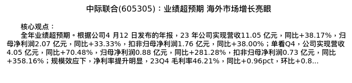 值得注意的是:2024年04月广发证券的代川/孙柏阳/王宁分析师,首次发布关于中际联合的研究报告,标题为:中际联合(605305):业绩超预期 海外市场增长亮眼。