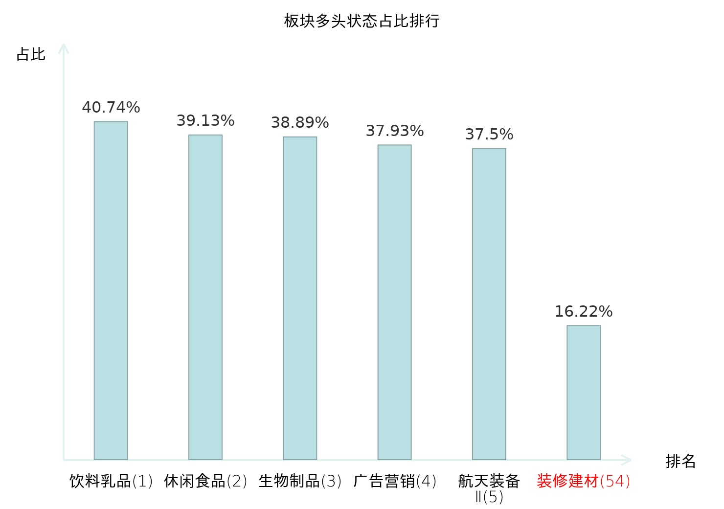 全市场所有行业板块中主力多头状态占比排名中,饮料乳品板块位居第一。国有大型银行Ⅱ板块名次提升最快,较昨日上升71位。