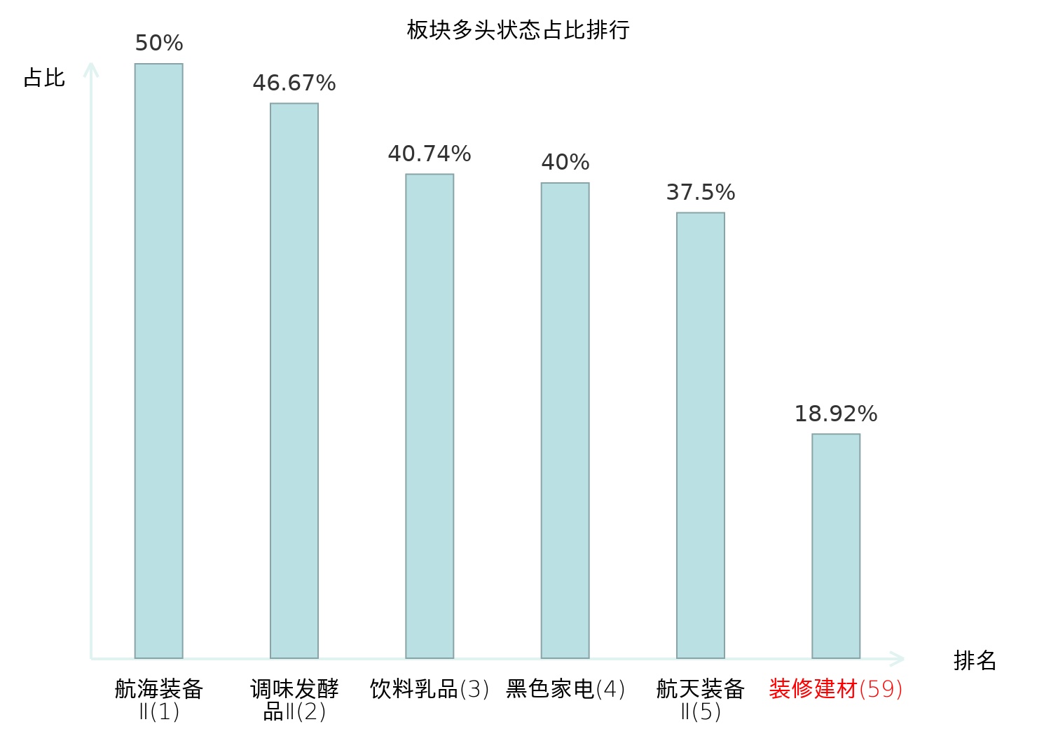 全市场所有行业板块中主力多头状态占比排名中,航海装备Ⅱ板块位居第一。航海装备Ⅱ板块名次提升最快,较昨日上升99位。