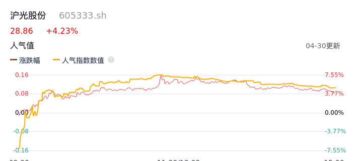 04月30日,沪光股份收报28.86,股价涨幅4.23%,成交金额3.05亿元,换手率2.43%。