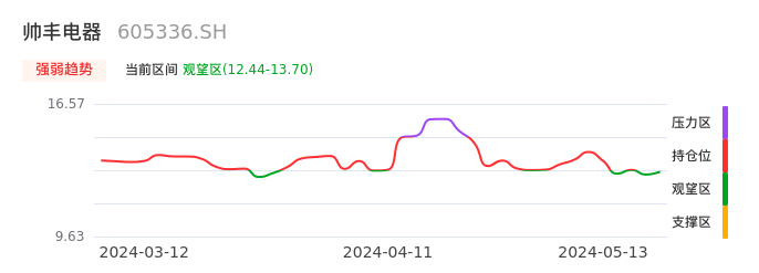 05月13日,帅丰电器收报13.64,股价涨幅0.74%,成交金额6027.91万元,换手率2.46%。