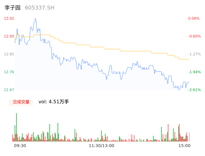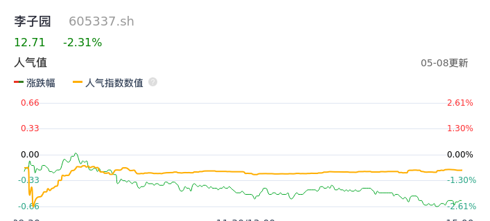 05月08日,李子园收报12.71,股价涨幅-2.31%,成交金额5776.73万元,换手率1.14%。