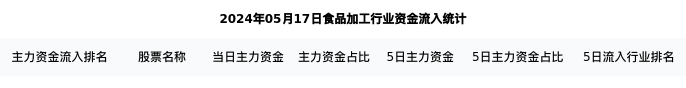 从主力资金流向来看,食品加工行业今日主力资金流入5.02亿元,在所有申万二级行业中排名:81/131。