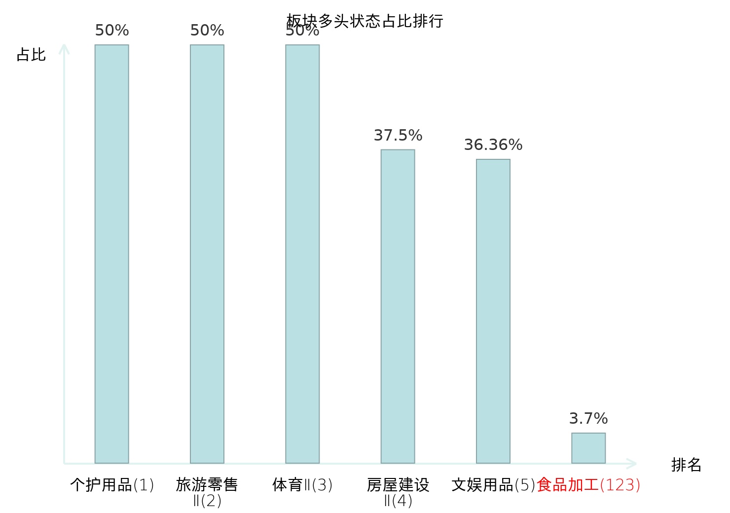 全市场所有行业板块中主力多头状态占比排名中,个护用品板块位居第一。焦炭Ⅱ板块名次提升最快,较昨日上升68位。