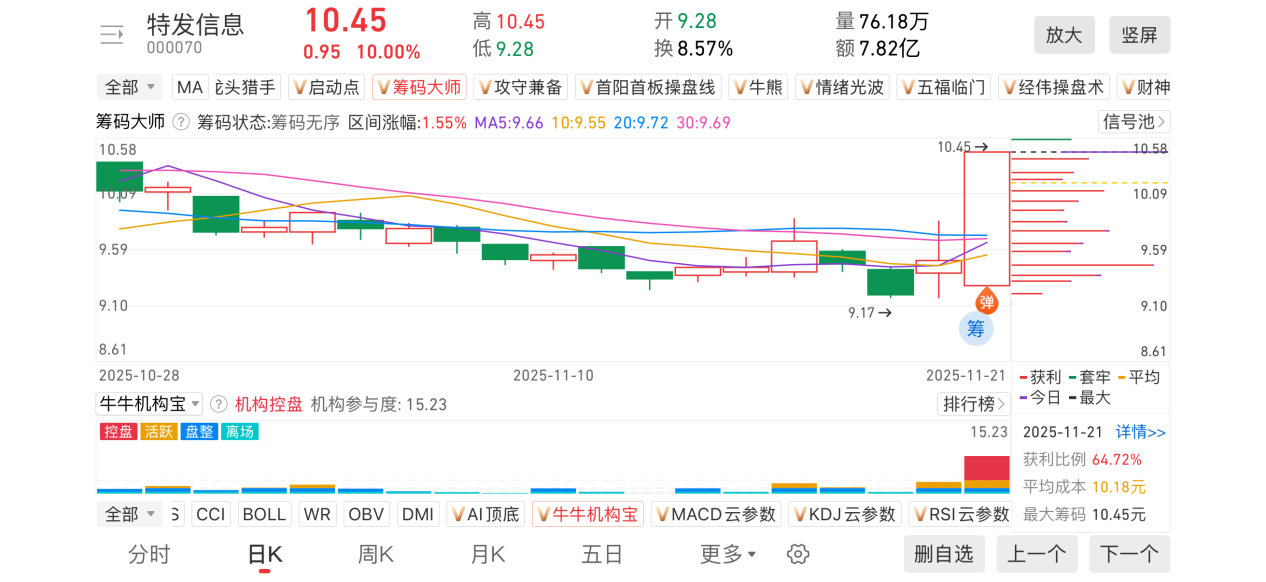 1)20251121-特发信息-000070-【筹码大师】和【牛牛机构宝】-近期出现弹信号且底部量柱由绿转红