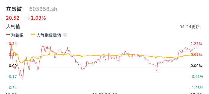 04月24日,立昂微收报20.52,股价涨幅1.03%,成交金额1.02亿元,换手率0.74%。