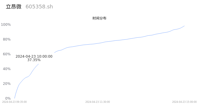根据成交分布分析,该股票当天放量成交,成交清淡。时间上看,早盘前半小时成交量占据当天总成交量的37.35%;价格上看,成交呈现中间峰。成交分布分析主要研究股票成交的分布特性,不具有预测功能,请知悉。