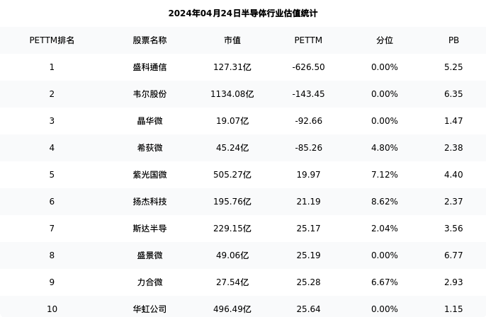 立昂微最新报告期数据为一季度,下表汇总了半导体行业内市值靠前的公司一季度主要经营数据