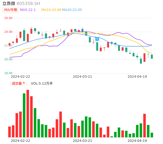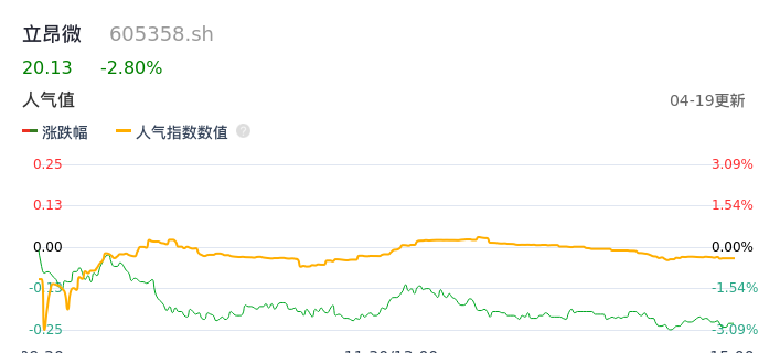04月19日,立昂微收报20.13,股价涨幅-2.80%,成交金额1.04亿元,换手率0.76%。
