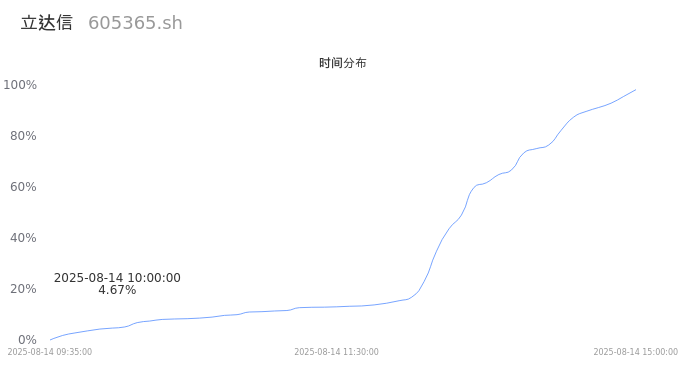 605365立达信2025年08月14日成交11.32万手,成交金额1.72亿,相较昨日放量8.54万手,换手率2.25%,成交清淡。
