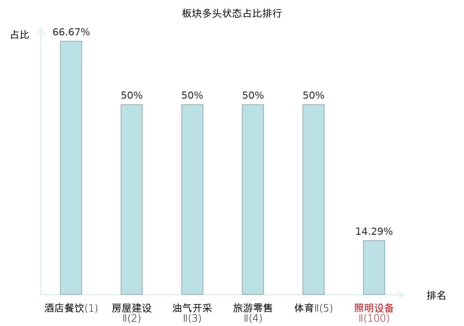 全市场所有行业板块中主力多头状态占比排名中,酒店餐饮板块位居第一。农商行Ⅱ板块名次提升最快,较昨日上升50位。