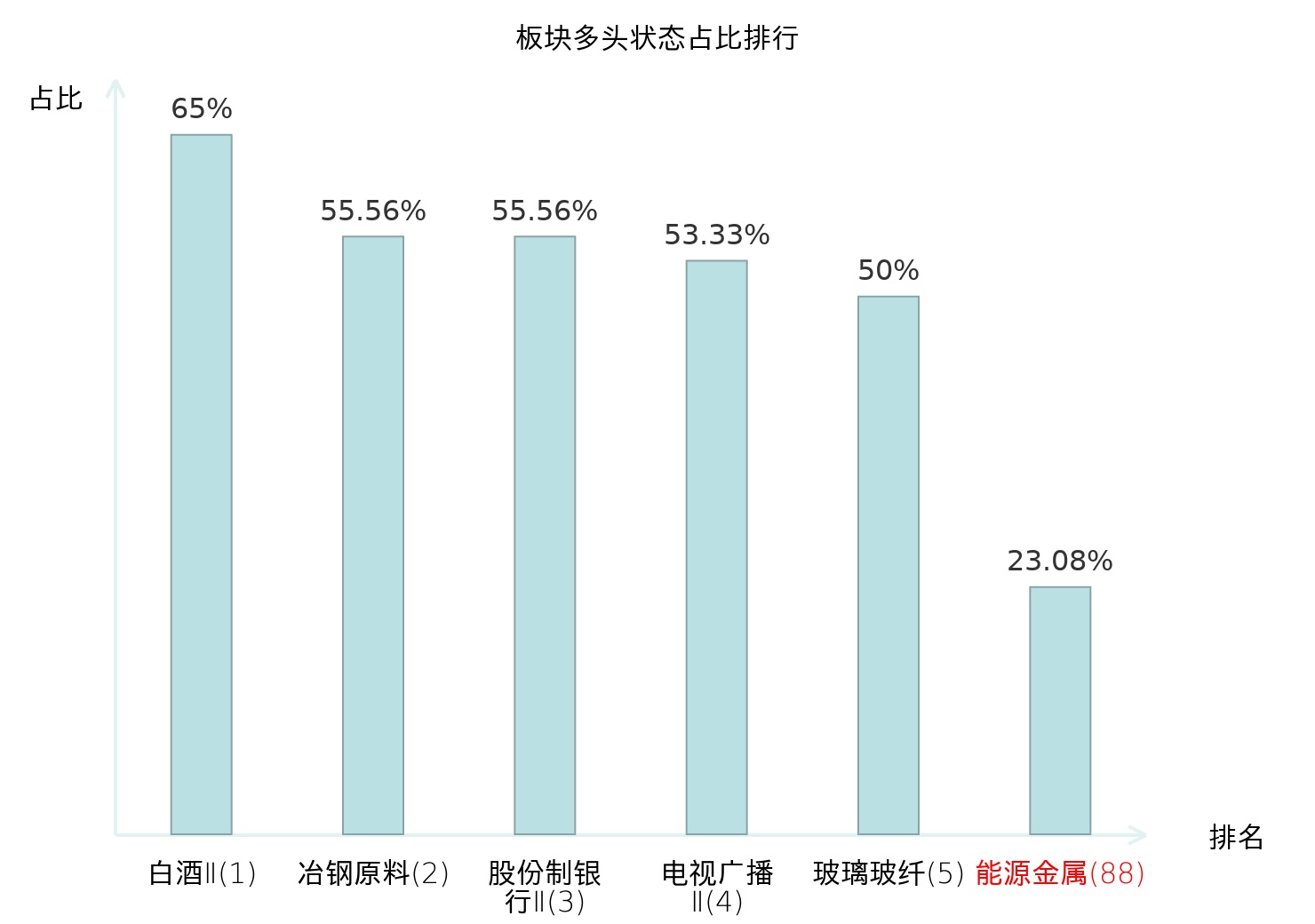 从主力宝信号数据分析,博迁新材所属的能源金属板块中共3只股票处于主力多头状态,主力多头状态占比在全行业中排名第88位,较昨日下降50位;排名越高说明主力对于板块整体看多意愿越强;此次大幅下降表明主力对该板块的整体态度趋于谨慎,可能影响后续资金配置节奏。全市场所有行业板块中主力多头状态占比排名中,白酒Ⅱ板块位居第一;白酒Ⅱ板块名次提升最快,较昨日上升71位;上述变动反映了主力资金在不同行业间的再平衡过程,为投资者判断板块相对强弱及潜在轮动方向提供了客观依据。