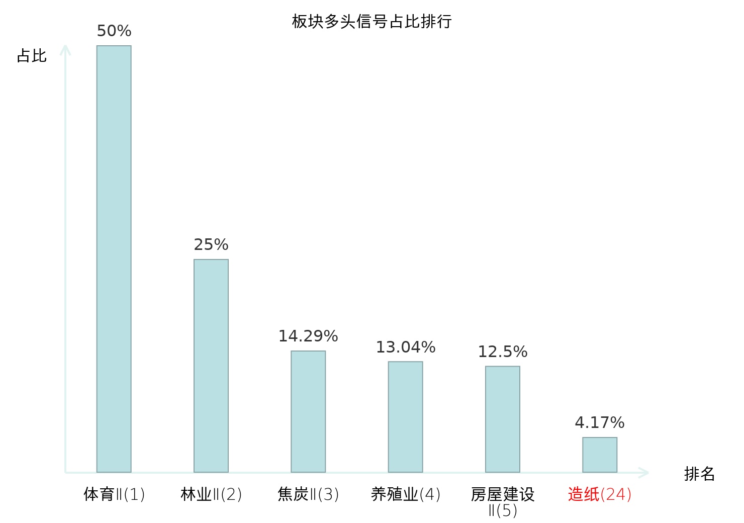 全市场所有行业板块中主力多头信号占比排名中,体育Ⅱ板块位居第一。体育Ⅱ板块名次提升最快,较昨日上升130位。