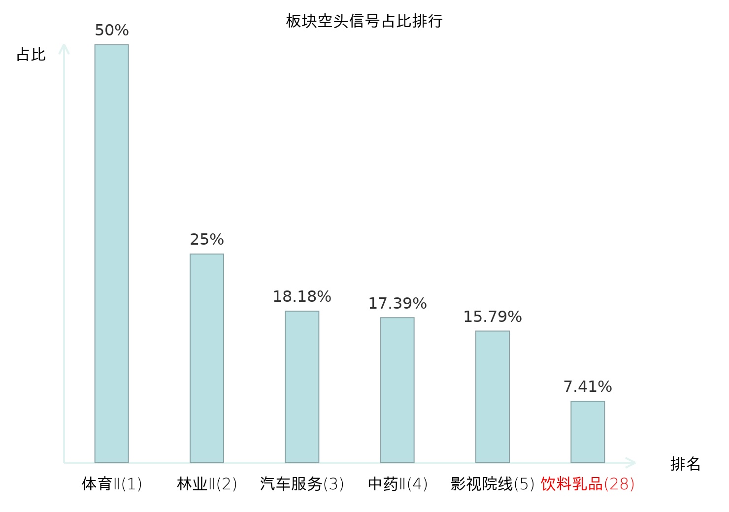 全市场所有行业板块中主力空头信号占比排名中,体育Ⅱ板块位居第一。文娱用品板块名次提升最快,较昨日上升101位。