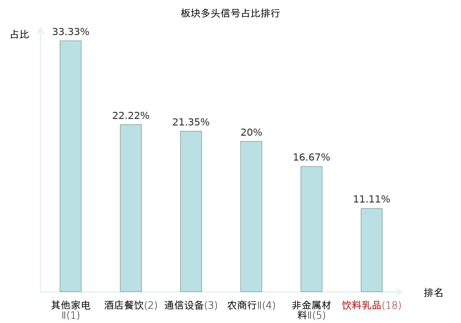 全市场所有行业板块中主力多头信号占比排名中,其他家电Ⅱ板块位居第一。其他家电Ⅱ板块名次提升最快,较昨日上升128位。