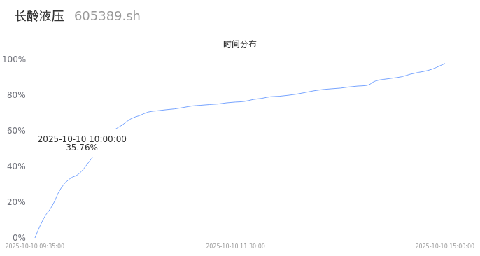 605389长龄液压2025年10月10日成交5.53万手,成交金额3.77亿,相较昨日放量2.21万手,换手率4.06%,成交清淡。