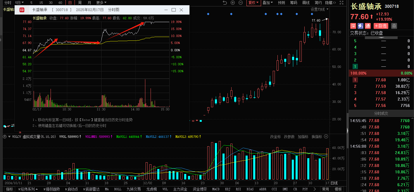 随着下午市场的轮动,机器人又进入轮动大军,其中长盛轴承尾盘20cm涨停状态,同时类似福莱新材趋势票也是不断在走反包加速或者是调整过之后重新上涨的状态,同时带动指数尾盘重新拉回