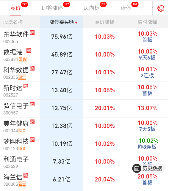 从今日竞价反馈上来: 腾讯昨日接入微信之后往上加速发酵催化,类似科华数据、数据港、东华软件这些直接被顶一字加速,同时高位的梦网科技这种再次加速,光线传媒直接大幅度高开,总体来看竞价指引的预期主要为低位强度继续支撑,高位的分歧较小的局面,整个预测