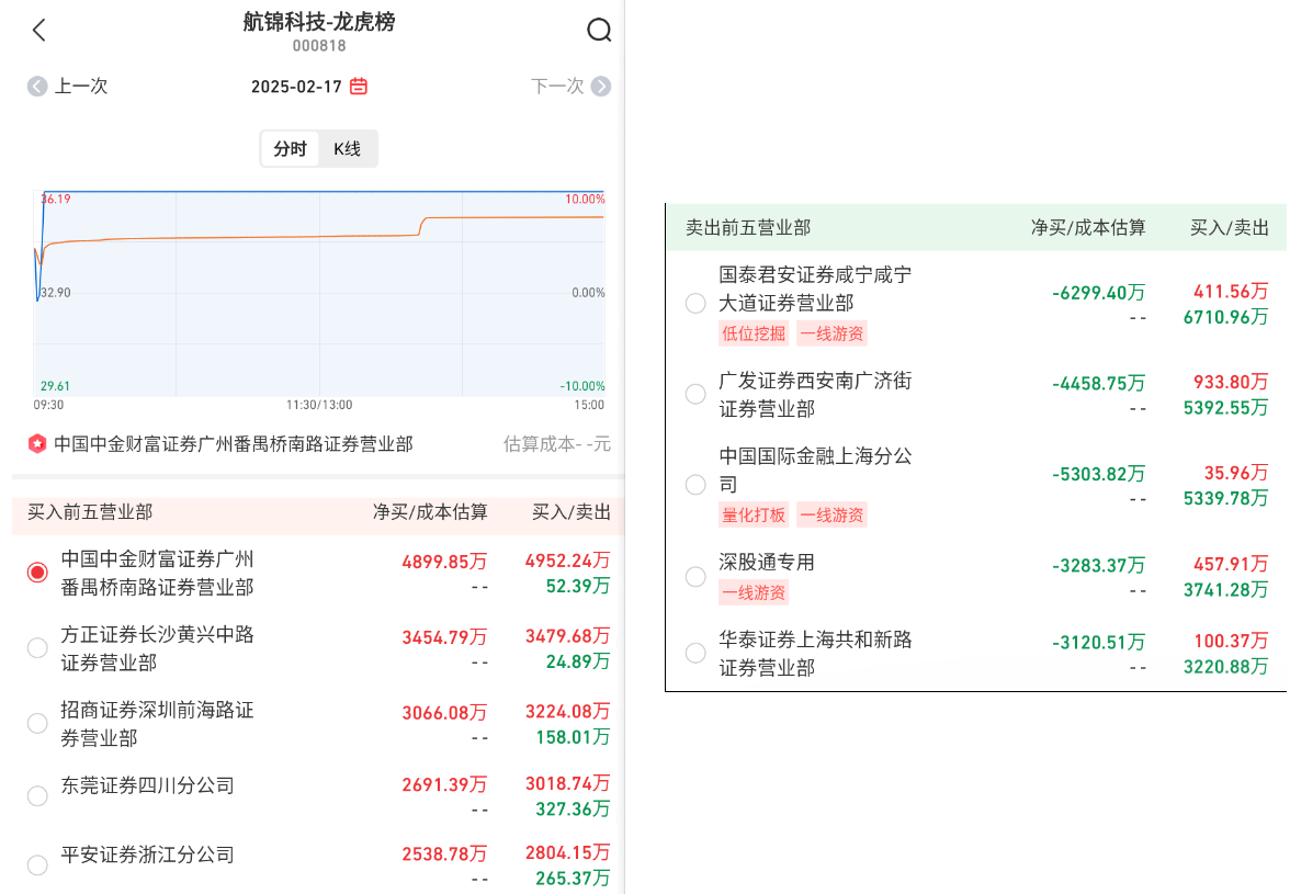 从榜单分析去看,假如我们这里定性为市场第一阶段的一字开板阶段结束,那么后续这些换手走出来的标的就相对来说比较重要,因为趋势高位缠打的阶段到了,因此类似杭锦科技这种高位还继续往上在走的票就相对来说走势的锚定较为重要,因为目前走到这个阶段,除了杭锅之外这种之外,就是类似杭锦这种高位不断断板反包的走势相对健康,而且这票已经率先触及异动,从榜单看席位均匀没有一家独大,因此还是继续可以看能否继续超预期往上延续的,作为deepseek的观察去看