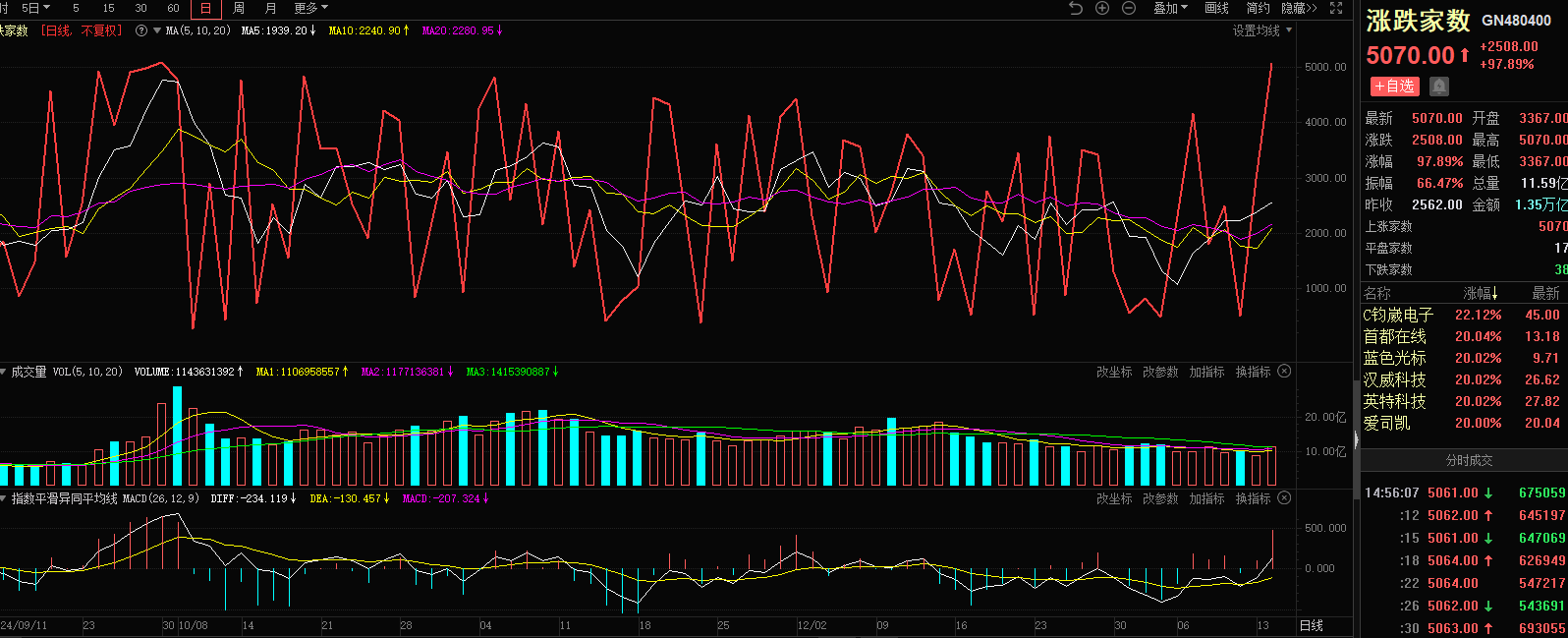 现在的行情就是每次补量继续走趋势,因为市场量能够大,所以容错率天然就会上升,2万亿成交当中两种路线,比如第一种中国资产估值修复进而流动性偏好上升的传统AI赋能个股,另外一种就是伴随超额的科技票,已经率先形成趋势的对于流动性转好之后的戴维斯双击机会,市场今日成交1.94万亿,上涨近3500家