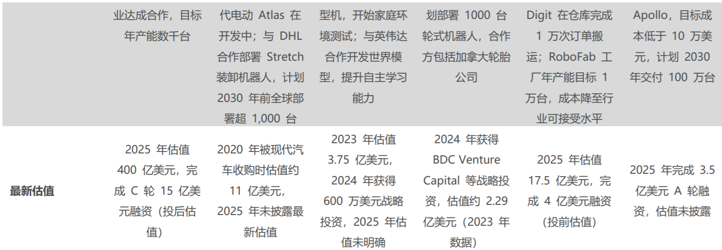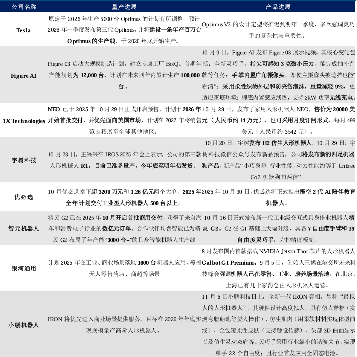 图:各大机器人公司量产节奏 |