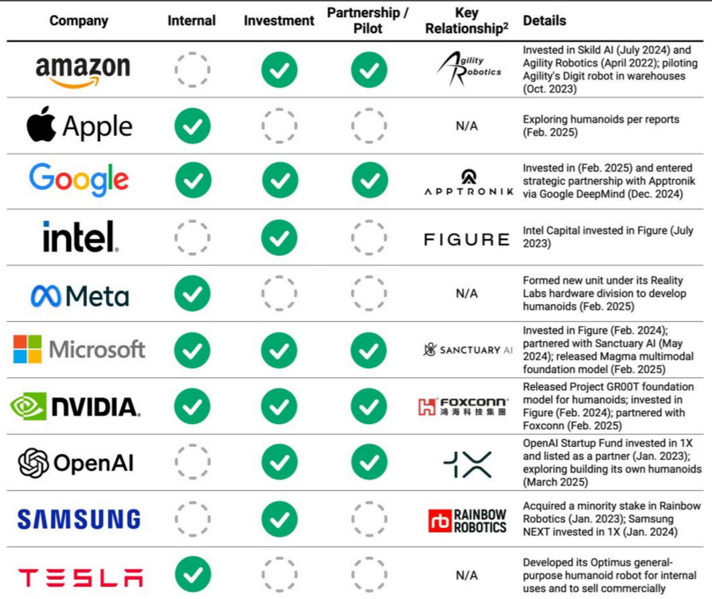 图:海外科技巨头人形机器人领域布局 |