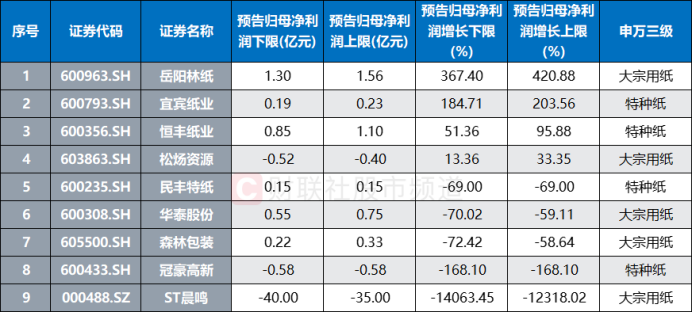 注:目前已披露中报预告的造纸股(截至7月25日数据)