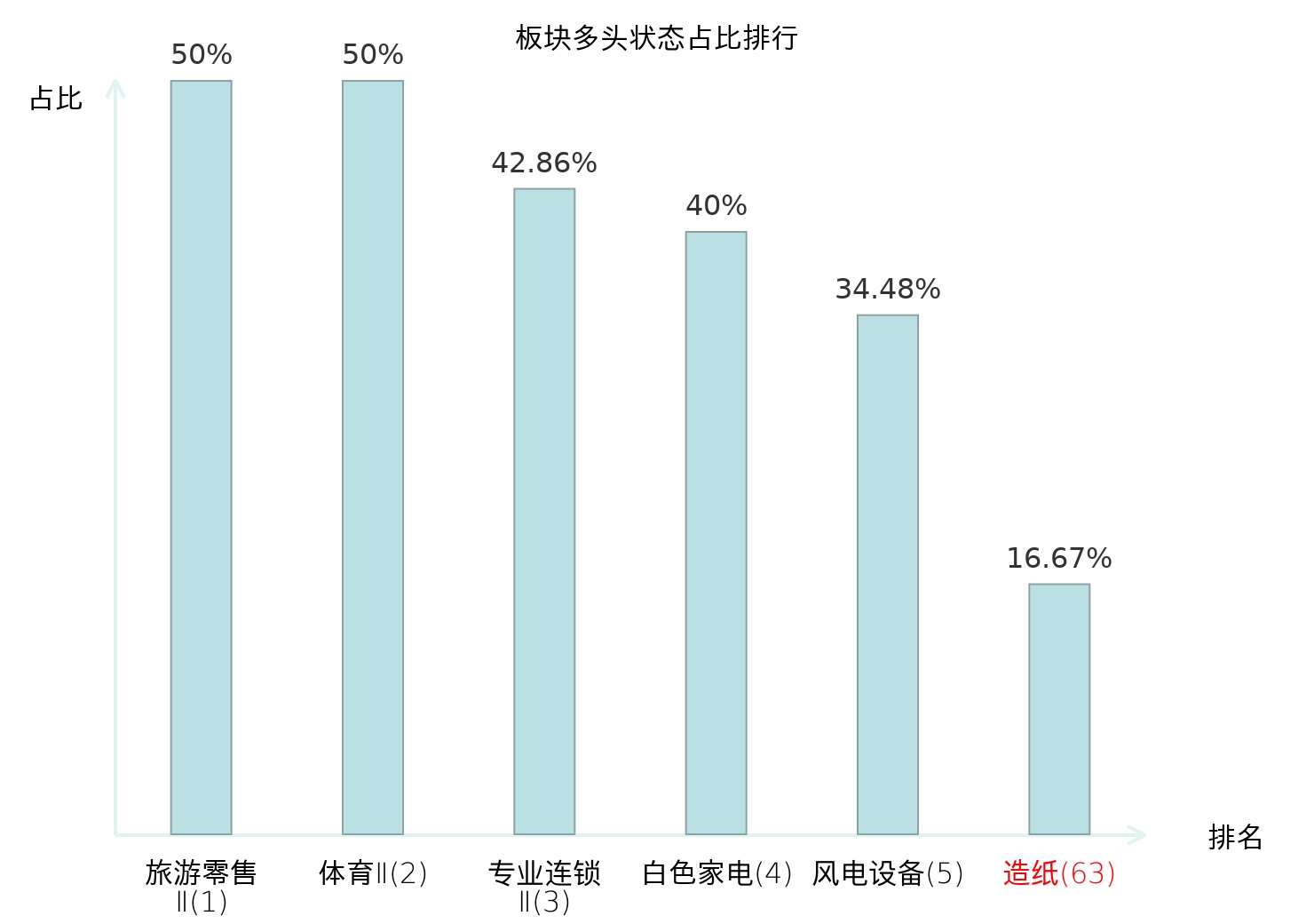 全市场所有行业板块中主力多头状态占比排名中,旅游零售Ⅱ板块位居第一。能源金属板块名次提升最快,较昨日上升50位。