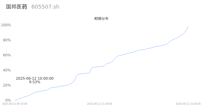 605507国邦医药2025年06月12日成交5.90万手,成交金额1.24亿,相较昨日放量3.25万手,换手率1.95%,成交清淡。