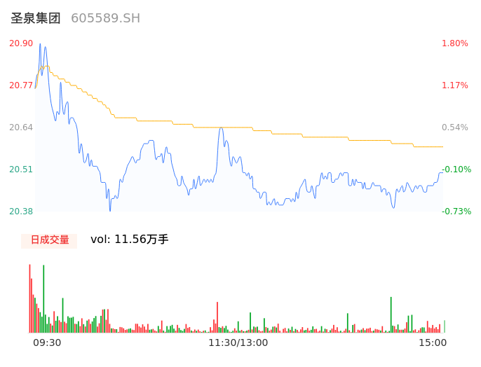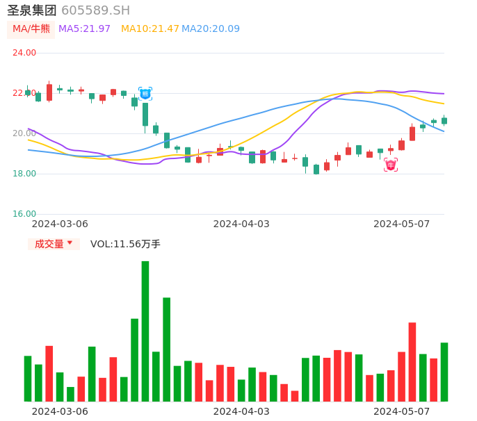 05月07日,圣泉集团收报20.48,股价涨幅-0.24%,成交金额2.38亿元,换手率1.87%。