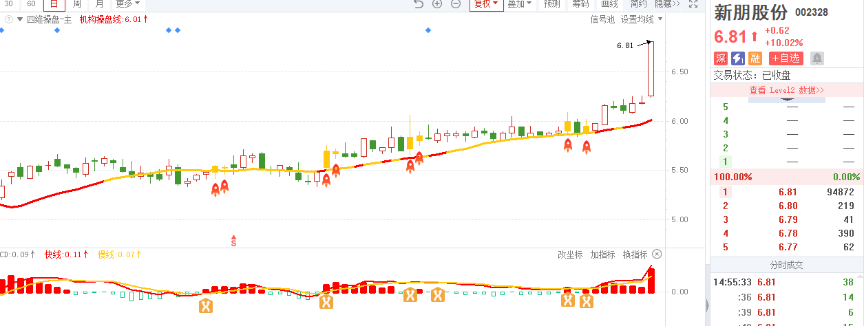 2)20250812-新朋股份-四维操盘-近期出现火箭信号且底部量柱由绿转红