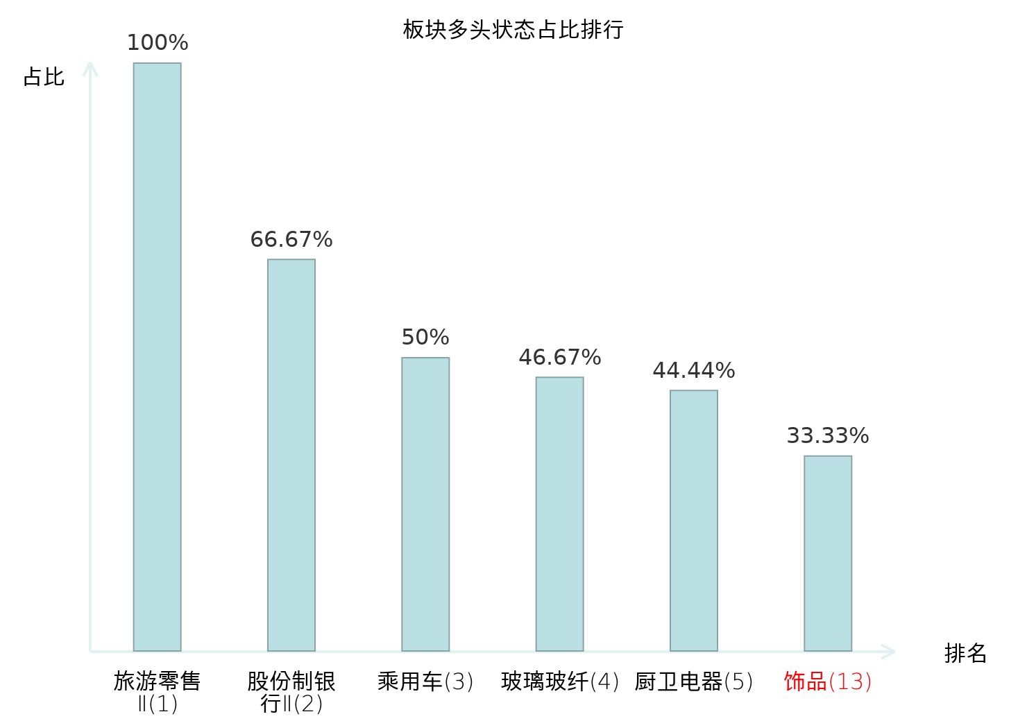 全市场所有行业板块中主力多头状态占比排名中,旅游零售Ⅱ板块位居第一。农产品加工板块名次提升最快,较昨日上升72位。