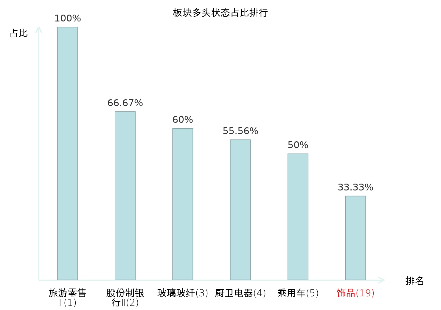 全市场所有行业板块中主力多头状态占比排名中,旅游零售Ⅱ板块位居第一。航天装备Ⅱ板块名次提升最快,较昨日上升91位。