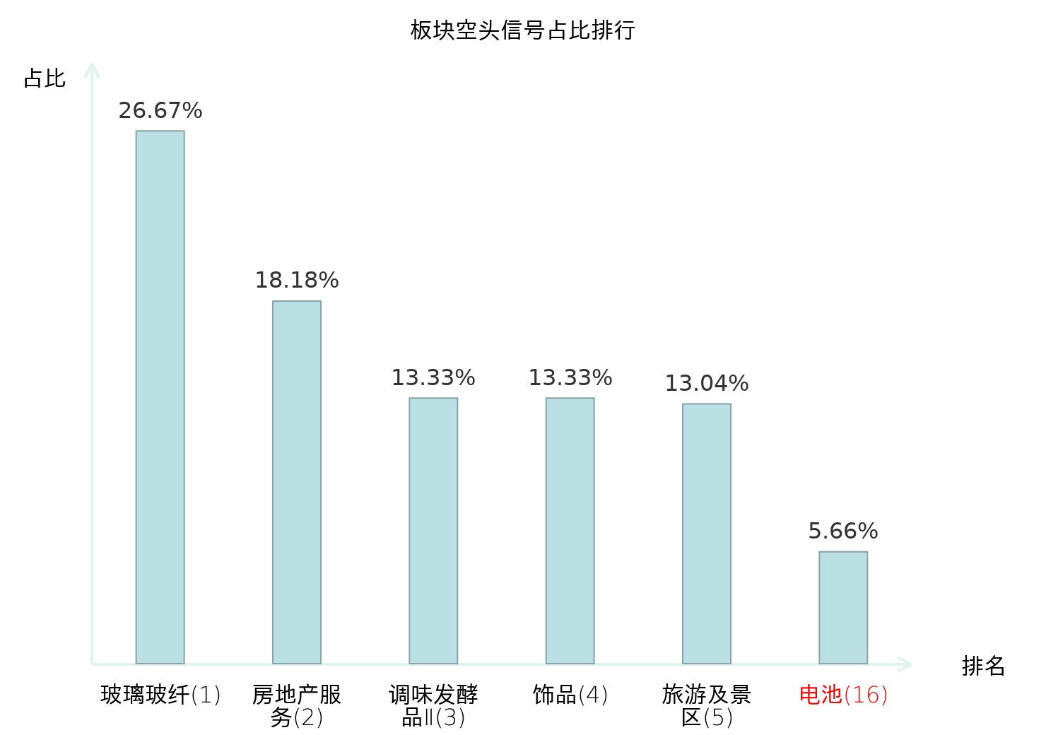 全市场所有行业板块中主力空头信号占比排名中,玻璃玻纤板块位居第一。元件板块名次提升最快,较昨日上升116位。