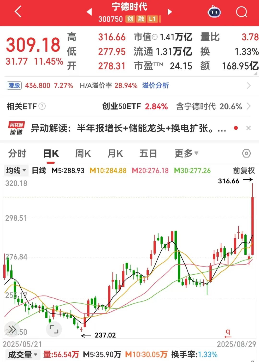 早盘,宁德时代平开高走,盘中最高上涨14.15%,股价重回300元上方,创近三年新高,收盘上涨11.45%,早盘成交额达到168.95亿元,环比显著放量。