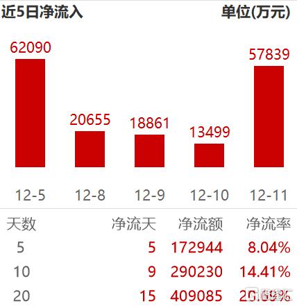 本周前四天,A500ETF基金(512050)再获11.09亿元资金净流入,连续第八日“吸金”,自10月21日以来净流入额高达71.3亿元,居股票ETF市场第一。