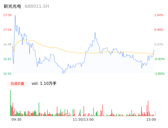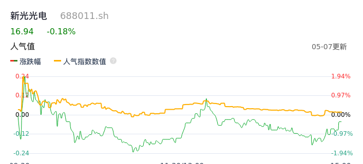 05月07日,新光光电收报16.94,股价涨幅-0.18%,成交金额1849.15万元,换手率1.10%。