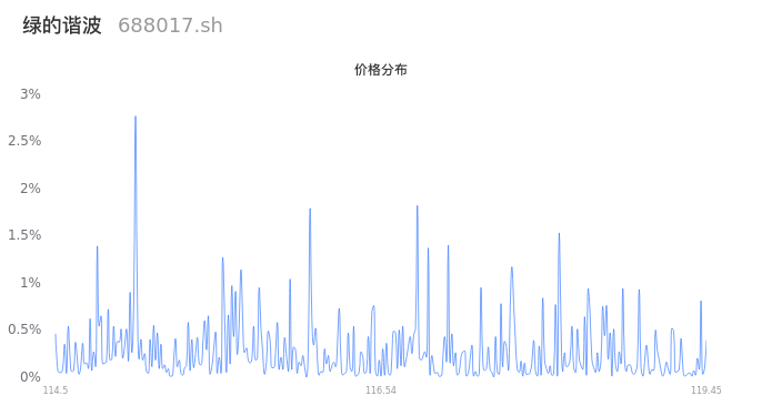 688017绿的谐波2024年05月08日成交2.03万手,成交金额2.37亿元,相较昨日放量3591手,换手率1.21%,成交清淡。