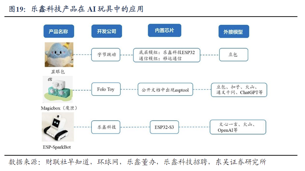 2)AI端侧赛道开启0到1全新机遇:AI玩具兼具有利的盈利模式和市场需求,市场空间较广。乐鑫提供带连接属性的处理器芯片,是将AI大模型运用到端侧设备的关键环节。根据公司2025年中报,乐鑫芯片已可对接OpenAI的ChatGPT、字节豆包、百度“文心一言”、阿里千问、DeepSeek等各类大模型,目前在开发者社群中已涌现大量展示案例。并且,乐鑫一站式平台帮助众多玩具小厂商提高进行AI玩具新品开发的便利性。