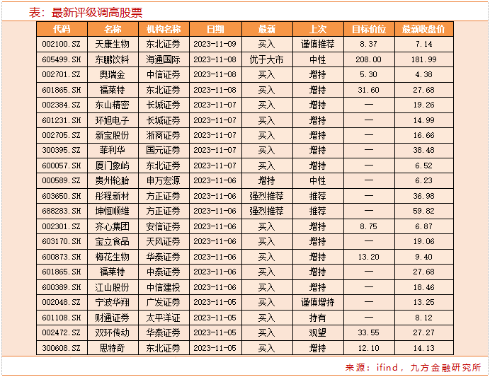 注:信息来源为ifind数据库(截止2023年11月10日星期五15:30)