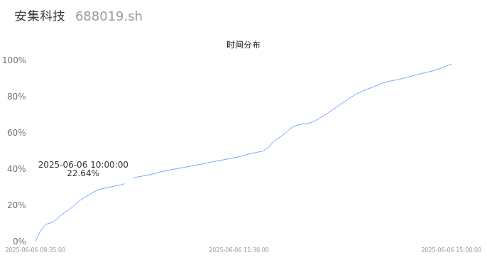 根据成交分布分析,该股票当天缩量成交,成交清淡。时间上看,早盘前半小时成交量占据当天总成交量的22.64%;价格上看,成交呈现右偏峰。成交分布分析主要研究股票成交的分布特性,不具有预测功能,请知悉。