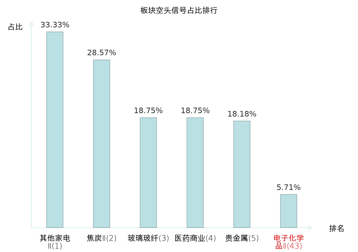 全市场所有行业板块中主力空头信号占比排名中,其他家电Ⅱ板块位居第一。工业金属板块名次提升最快,较昨日上升114位。