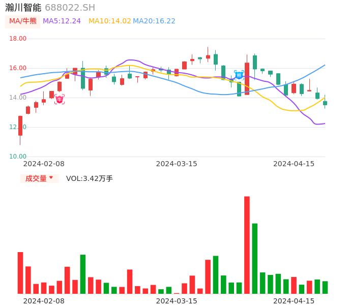 04月15日,瀚川智能收报13.50,股价涨幅-3.09%,成交金额4667.32万元,换手率1.95%。
