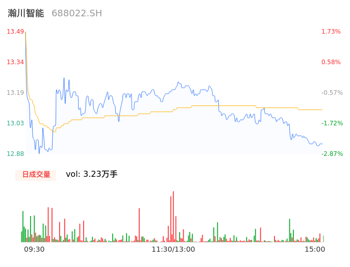 04月18日,瀚川智能收报12.92,股价涨幅-2.56%,成交金额4313.50万元,换手率1.87%。