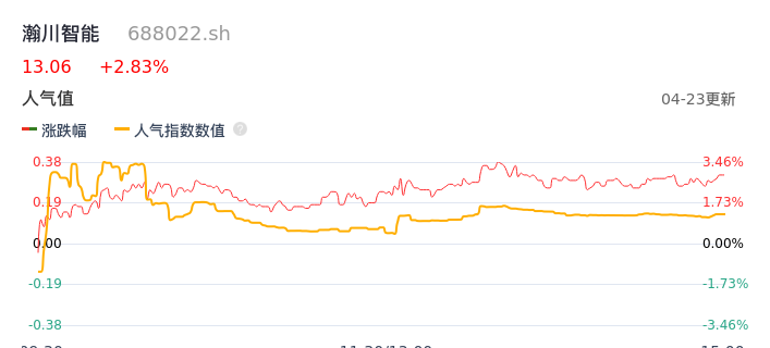 04月23日,瀚川智能收报13.06,股价涨幅2.83%,成交金额3451.97万元,换手率1.51%。