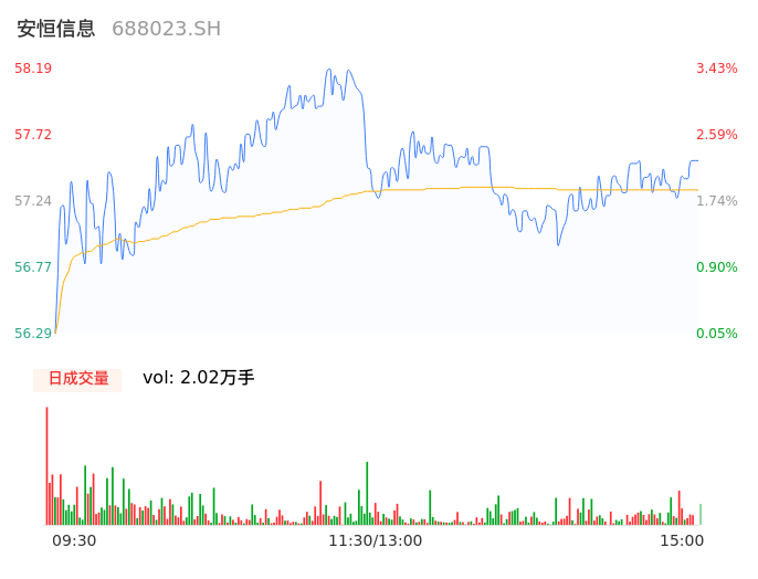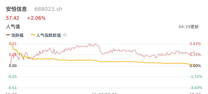 04月29日,安恒信息收报57.42,股价涨幅2.06%,成交金额1.16亿元,换手率2.57%。