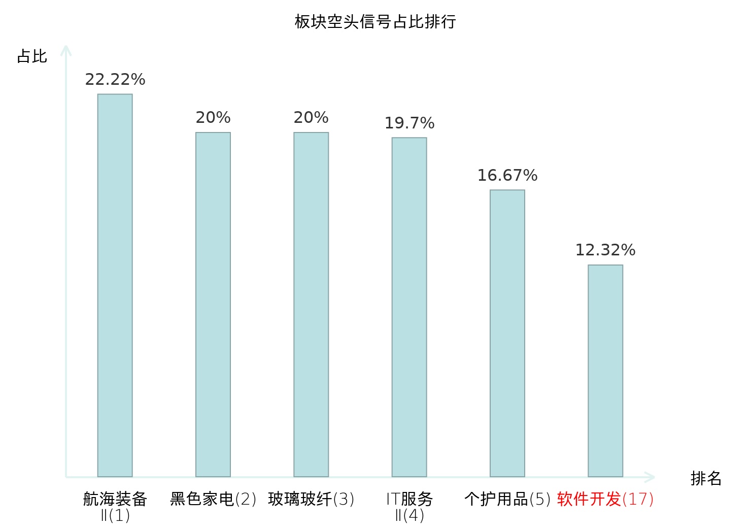 全市场所有行业板块中主力空头信号占比排名中,航海装备Ⅱ板块位居第一。纺织制造板块名次提升最快,较昨日上升107位。