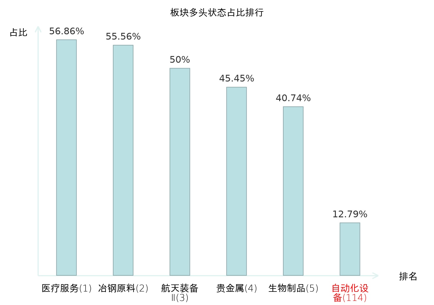 从主力宝信号数据分析,杰普特所属的自动化设备板块中共11只股票处于主力多头状态,主力多头状态占比在全行业中排名第114位,较昨日下降28位。较高的排名表明主力对于该板块整体看多意愿较强,而此次排名下降可能反映了主力对该板块态度的一些调整。全市场所有行业板块中主力多头状态占比排名中,医疗服务板块位居第一;医疗美容板块名次提升最快,较昨日上升75位。这些变动揭示了不同行业间主力资金动向的趋势,为投资者提供了关于市场情绪和潜在投资机会的重要线索。