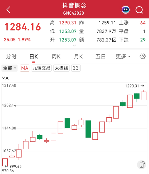 排名第1的就是字节跳动,其旗下的抖音,今日因外围消息刺激相关概念股上涨。