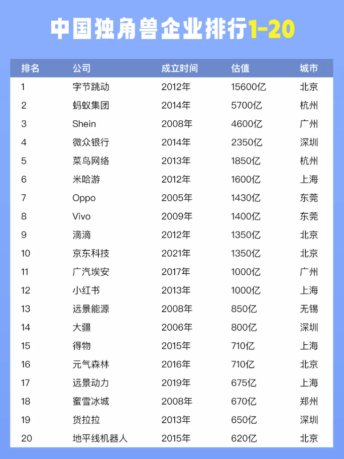 独角兽排名: